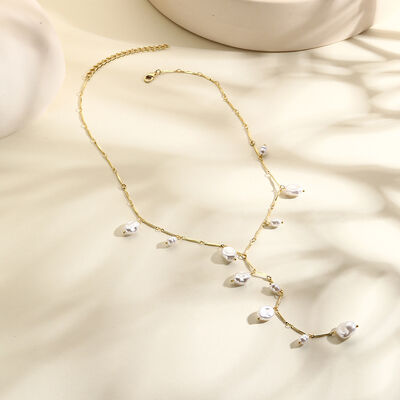 - Material:Synthetic Pearl,18K Gold-Plated,Stainless Steel