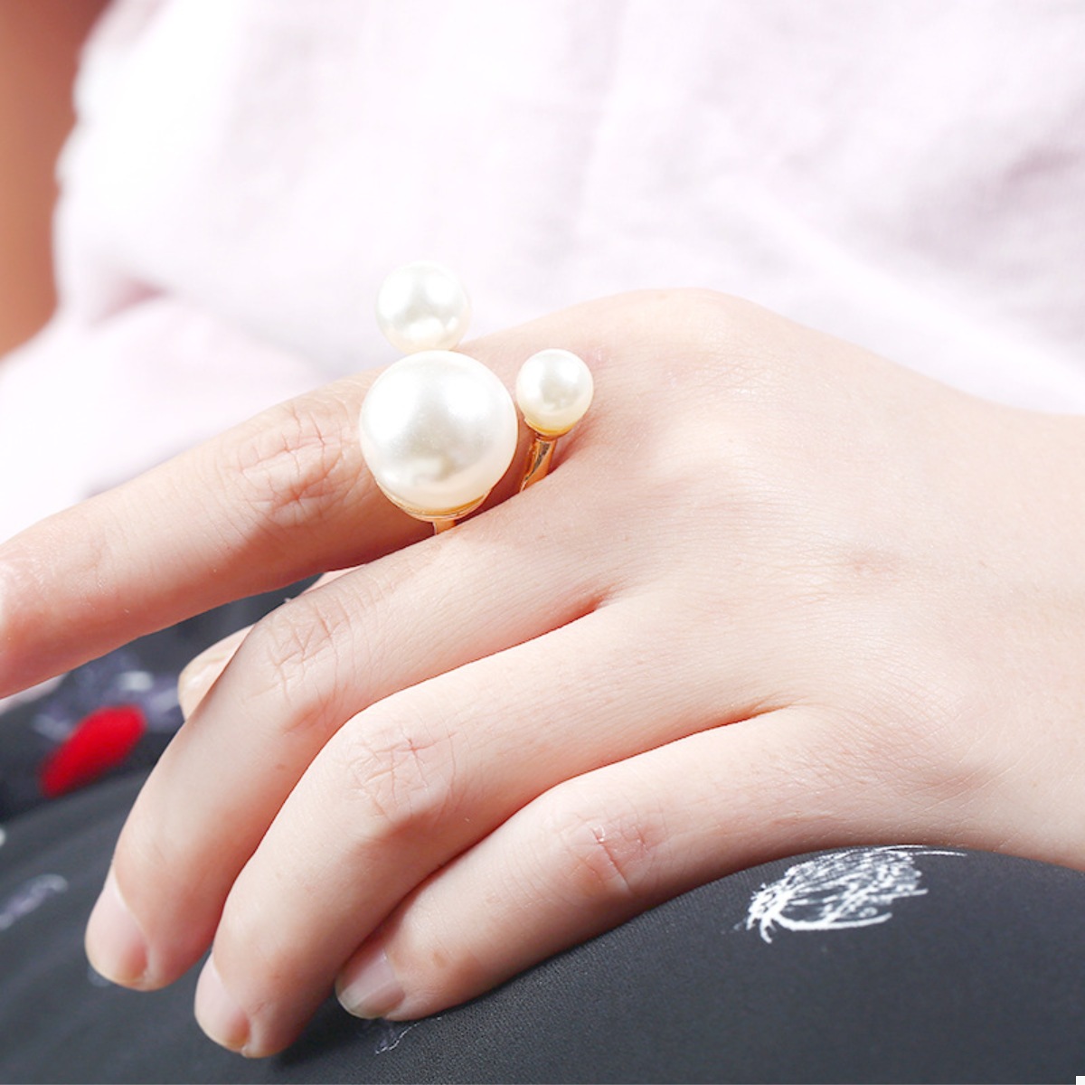18K Gold-Plated Pearl Open Ring