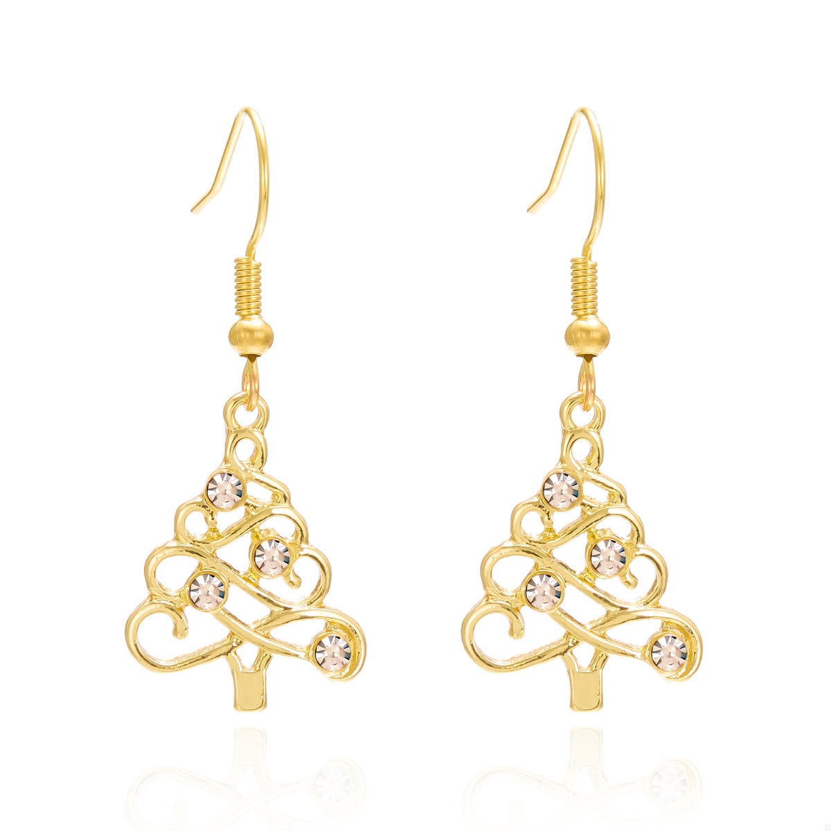 18K Gold-Plated Rhinestone Christmas Tree Dangle Earrings