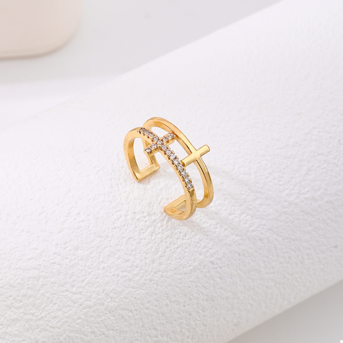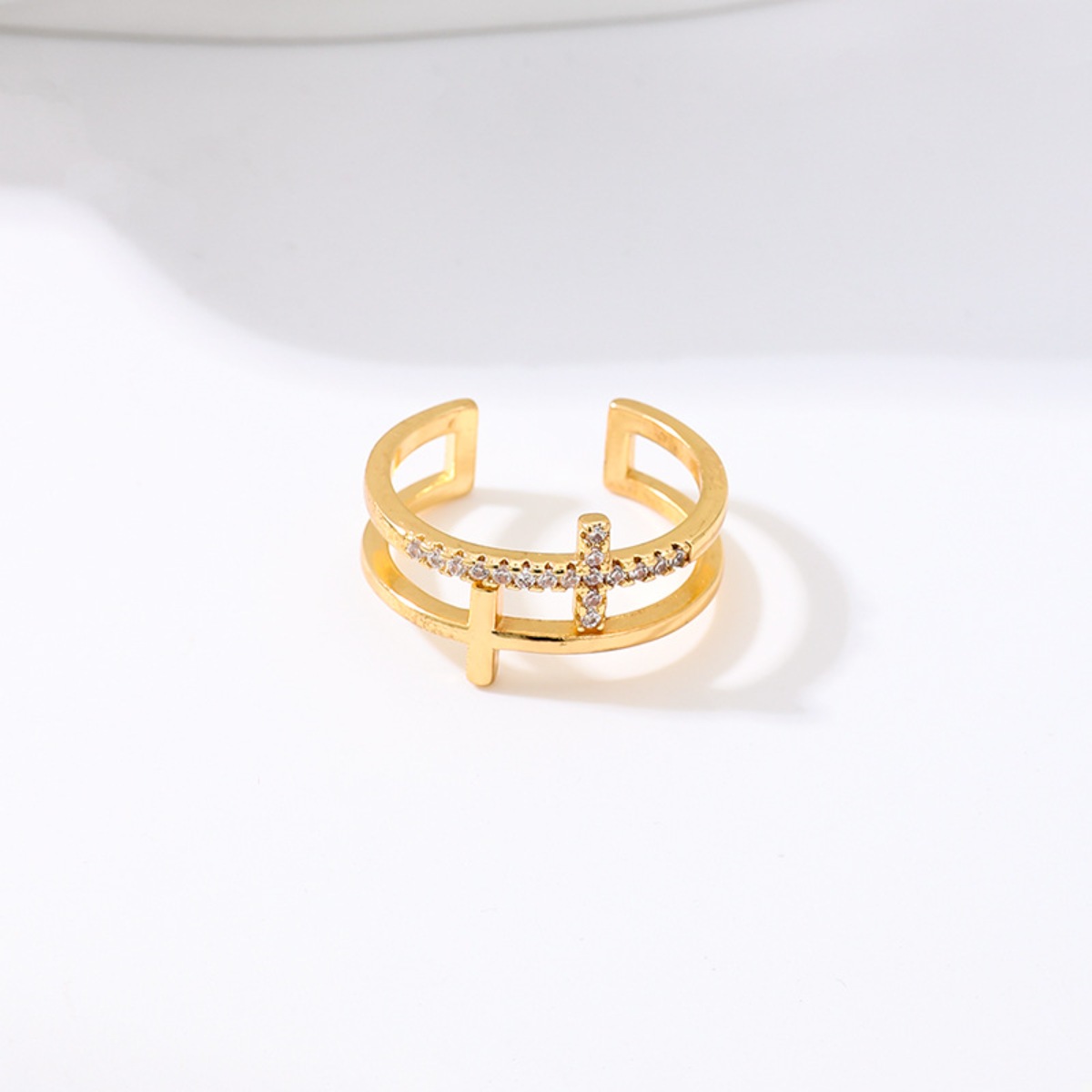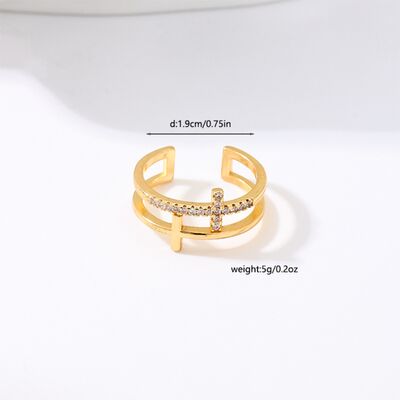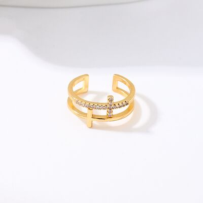 18K Gold-Plated Rhinestone Cross Open Ring