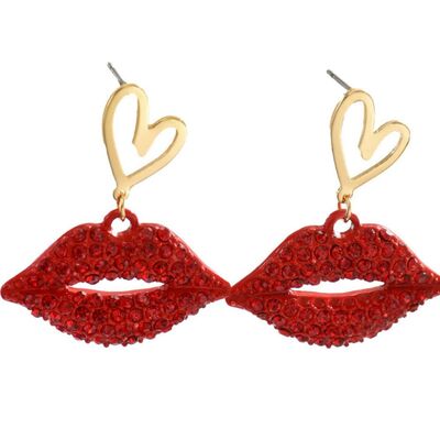 18K Gold-Plated Rhinestone Lips Heart Dangle Earrings