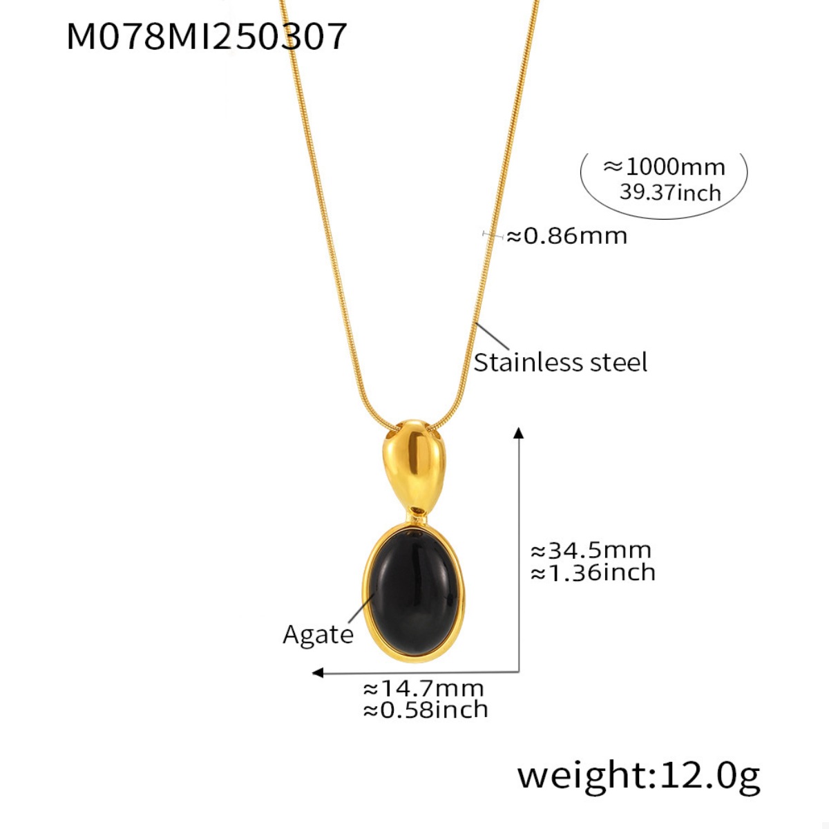 - Material:18K Gold-Plated,Stainless Steel,Black agate