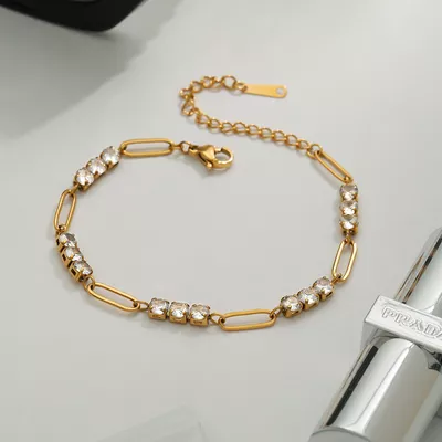 18K Gold-Plated Stainless Steel Rhinestone Chain Bracelet