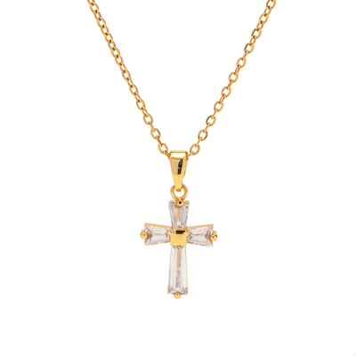 18K Gold-Plated Stainless Steel Zircon Cross Necklace