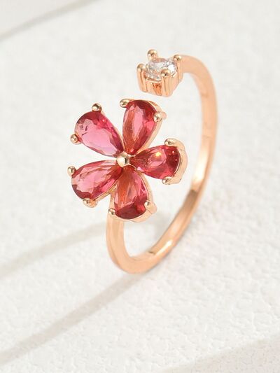18K Gold-Plated Stainless Steel Zircon Flower Ring