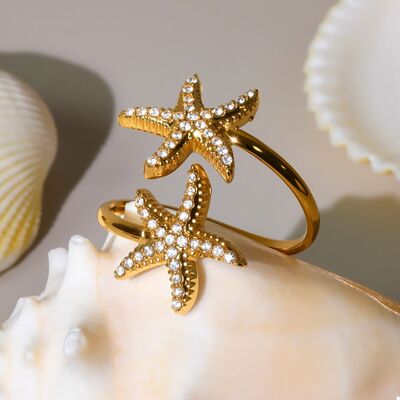 18K Gold-Plated Stainless Steel Zircon Starfish Ring
