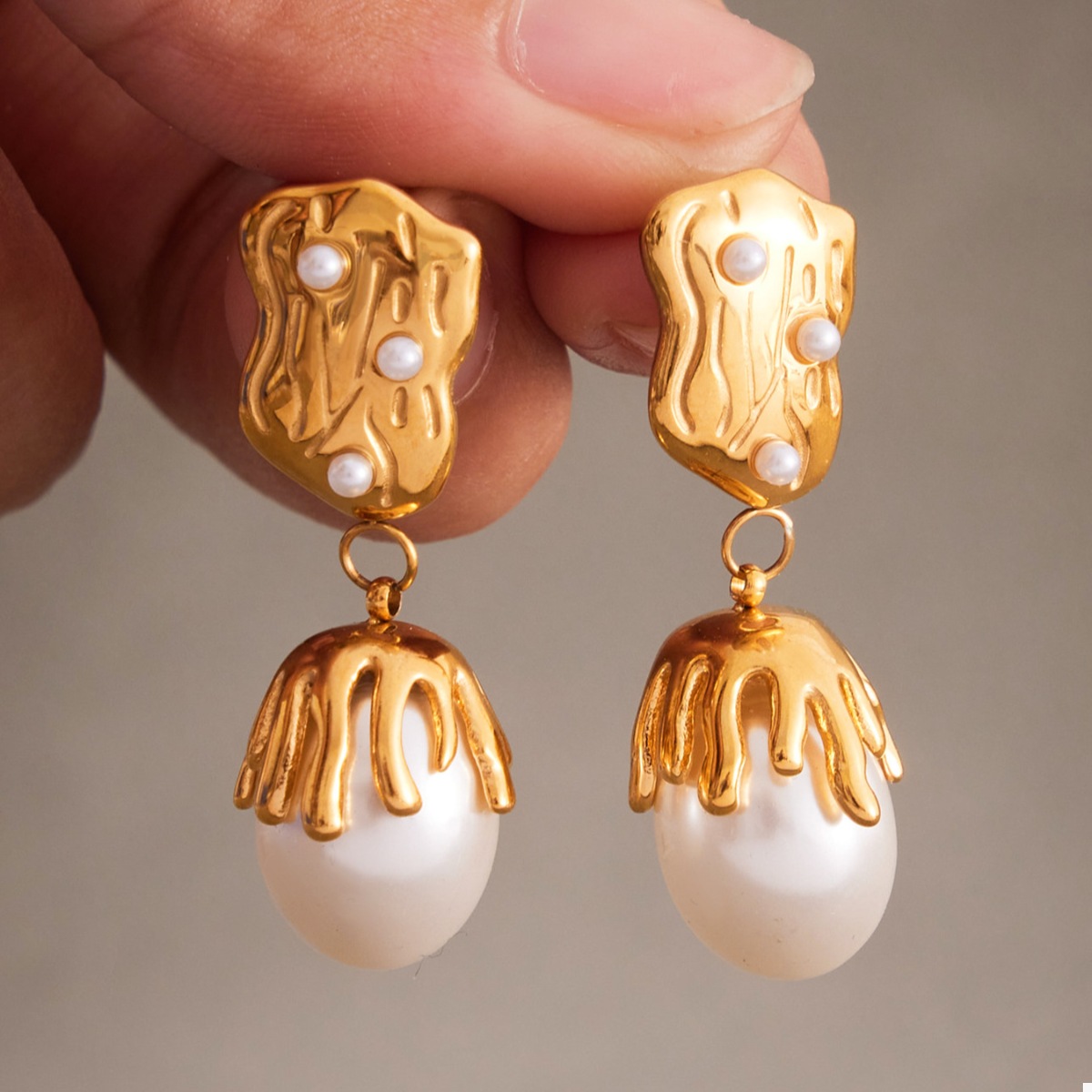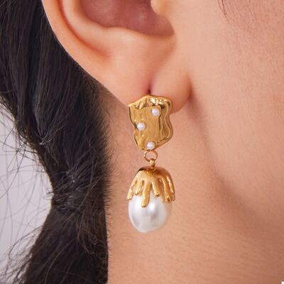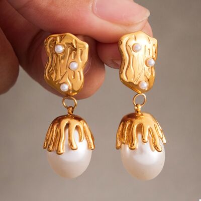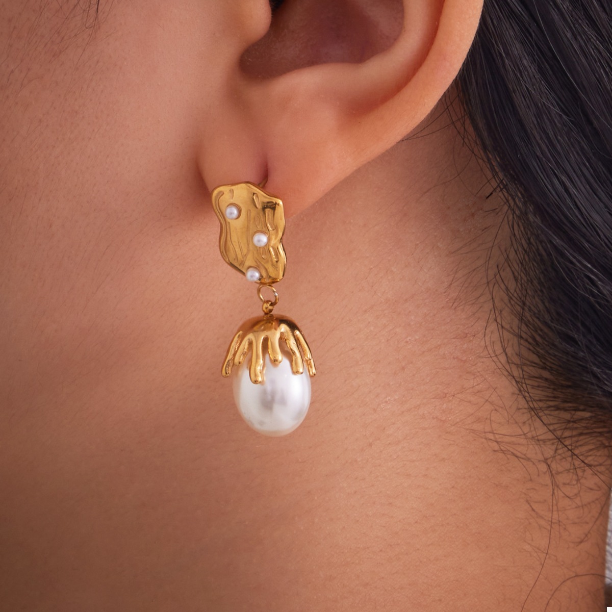 - Material:Synthetic Pearl,18K Gold-Plated,Stainless Steel
