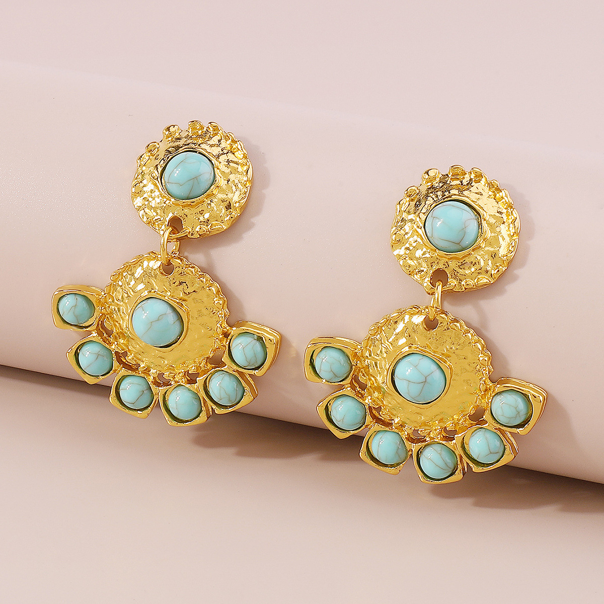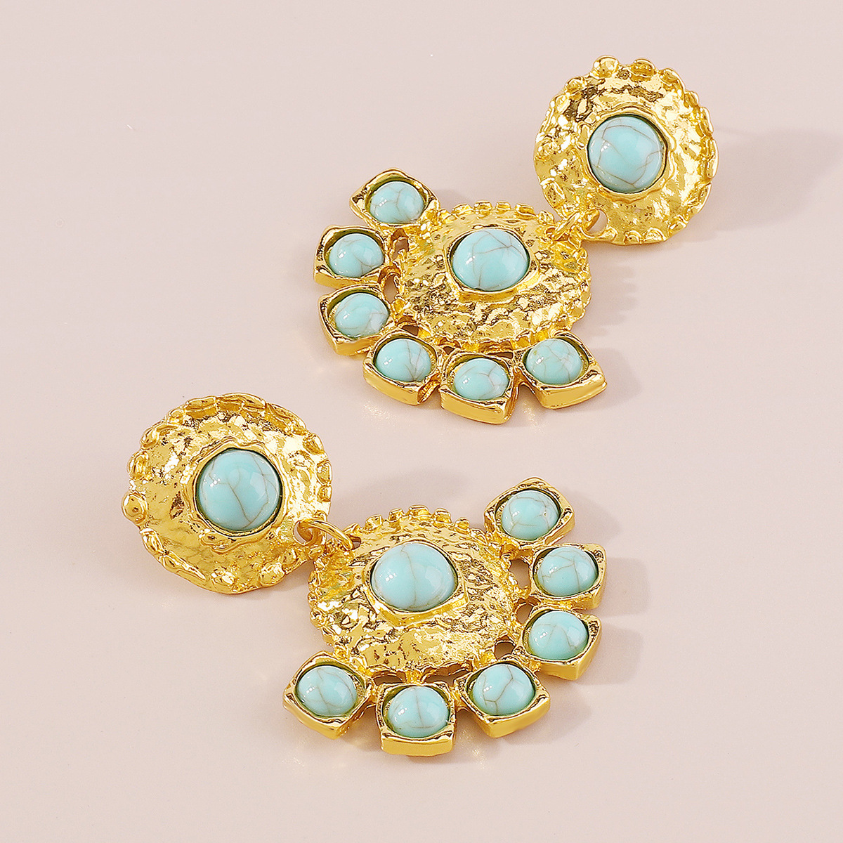 - Material:Artificial turquoise,18K Gold-Plated,Alloy