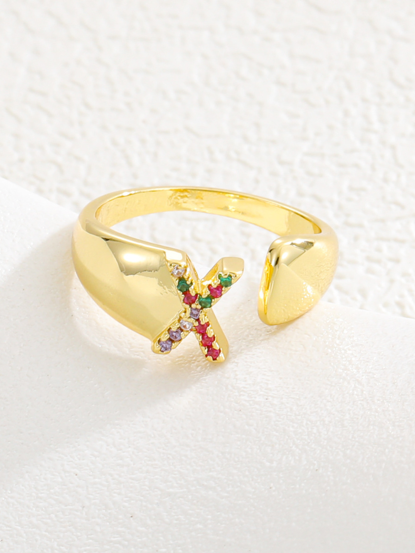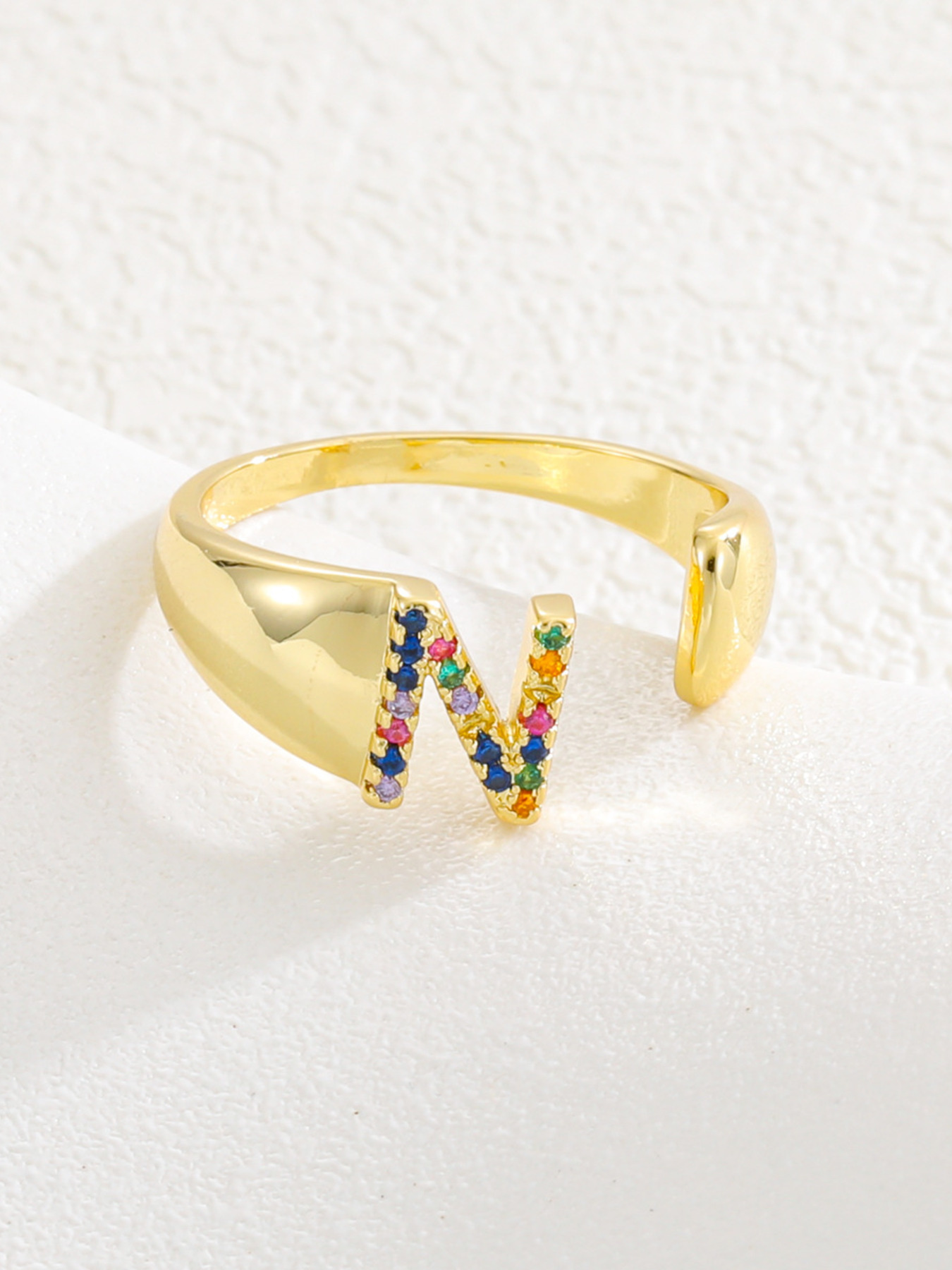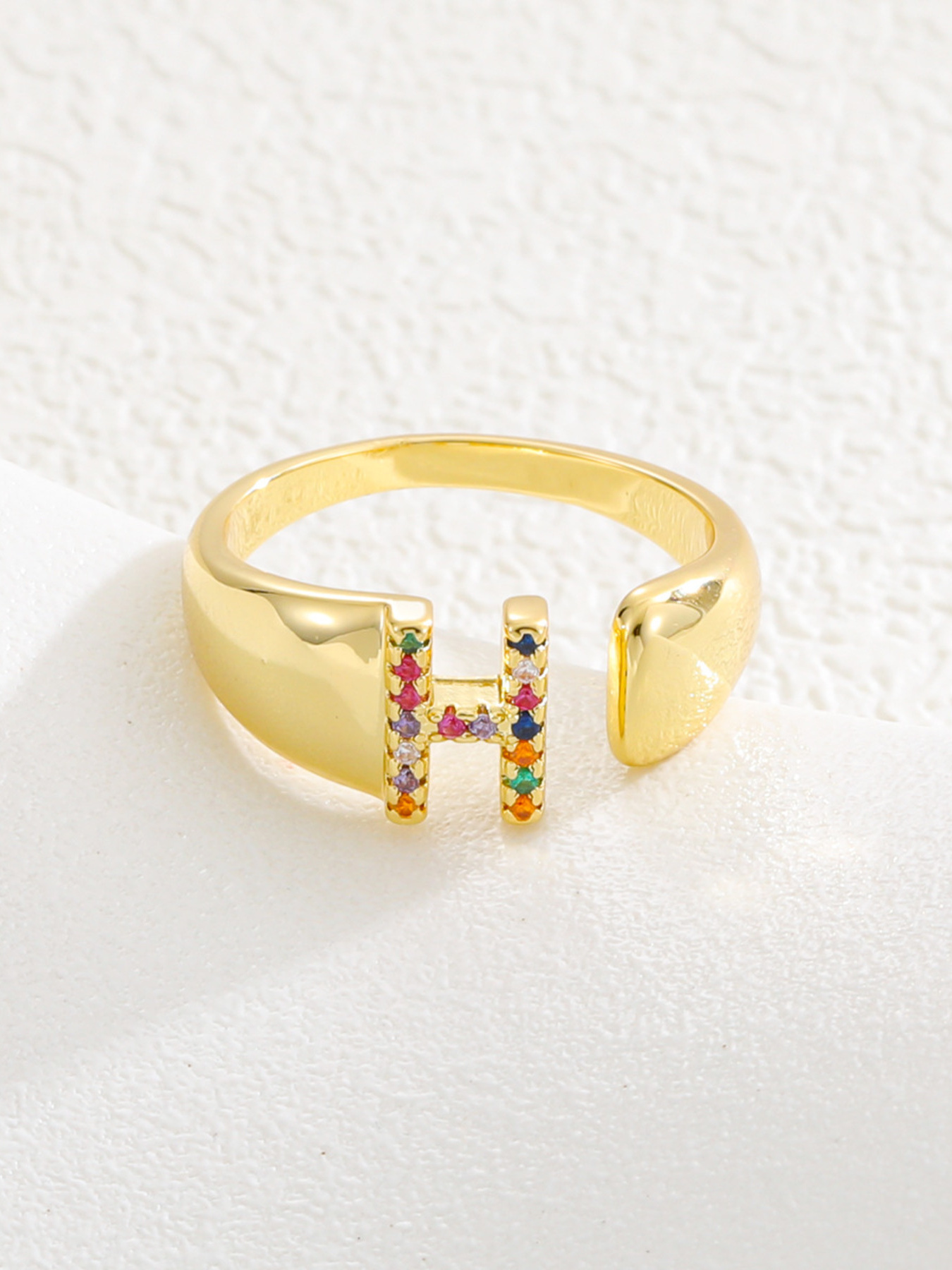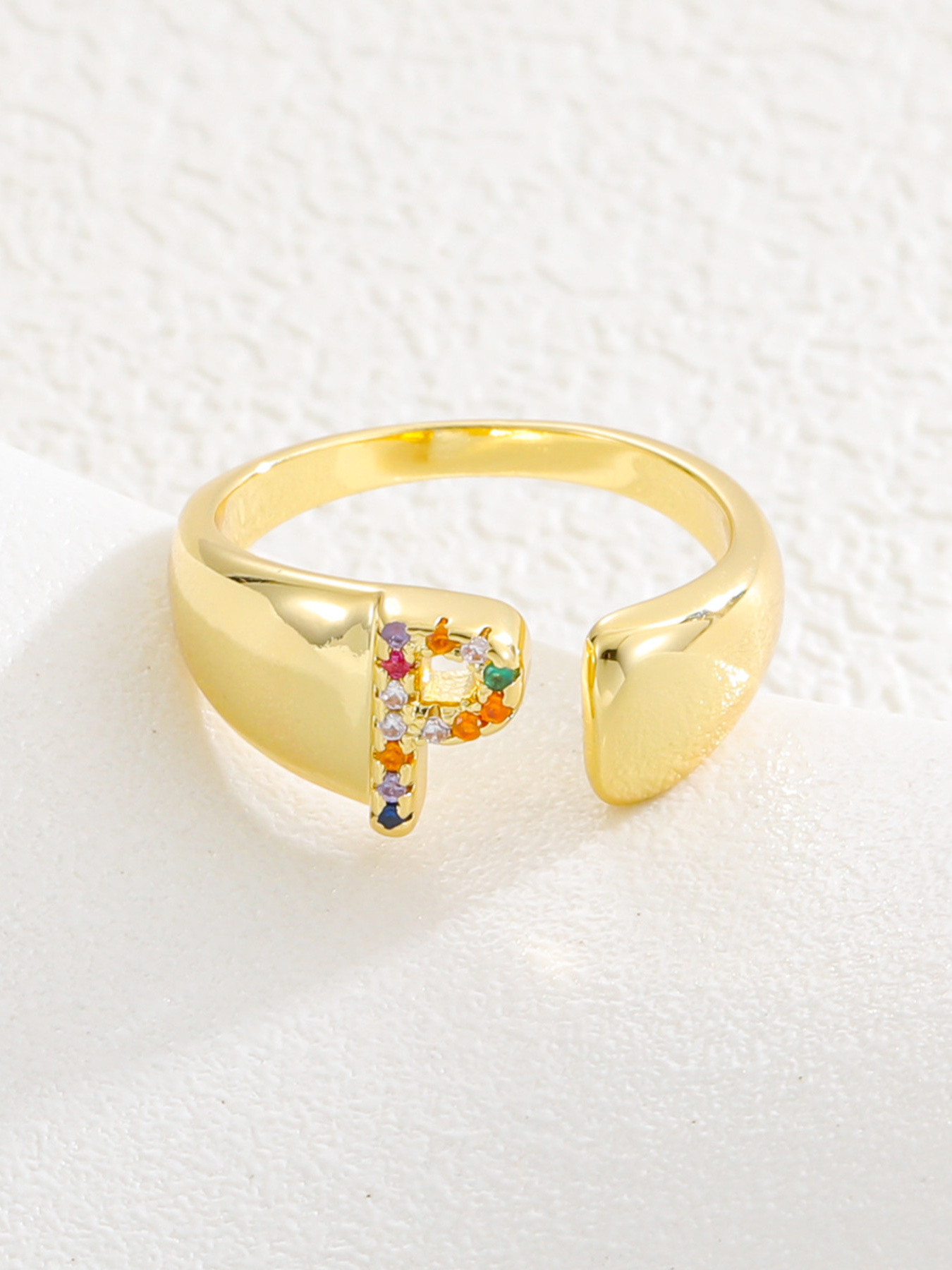 18K Gold-Plated Zircon Letter Ring