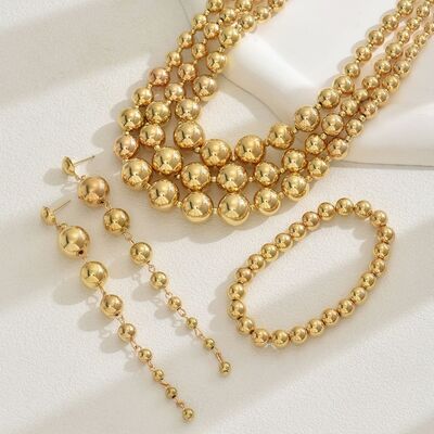 18K Stainless Steel Beaded Multi-Layered Necklace Bracelet Earrings Jewelry Set