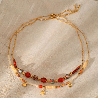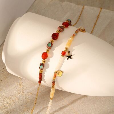 2 Piece 18K Gold-Plated Natural Stone Bead Necklace