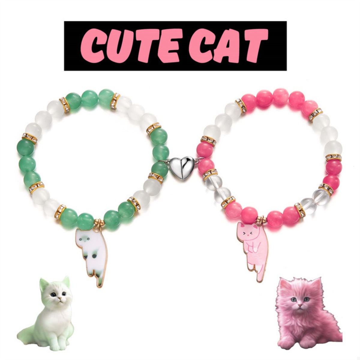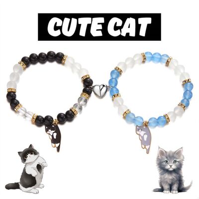 2 Piece Beaded Cat Charm Bracelet