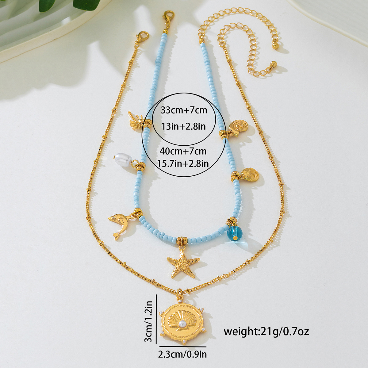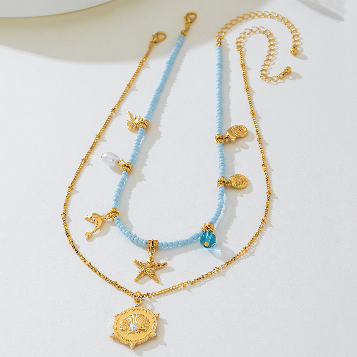 2-Piece Beaded Charm Necklace with Pendant