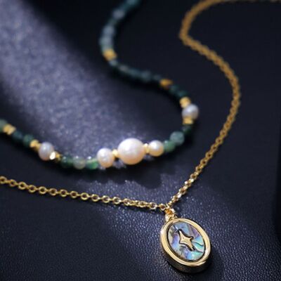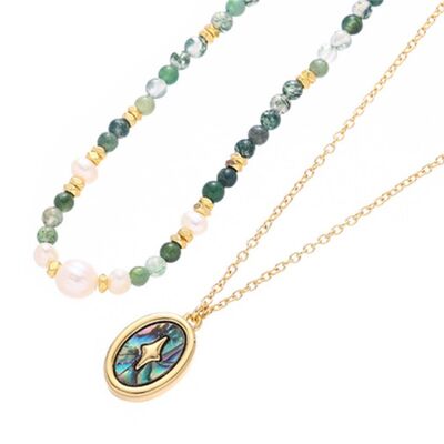 - Material:Freshwater Pearl,18K Gold-Plated,Natural stone,Brass,Abalone shells