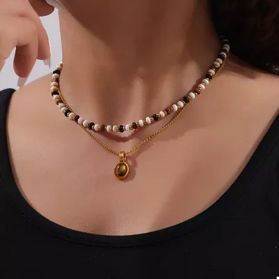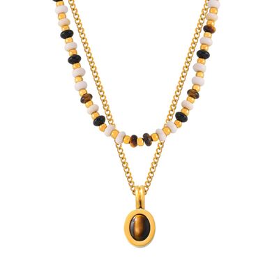 2 Piece Natural Stone and Gold Chain Necklace with Pendant