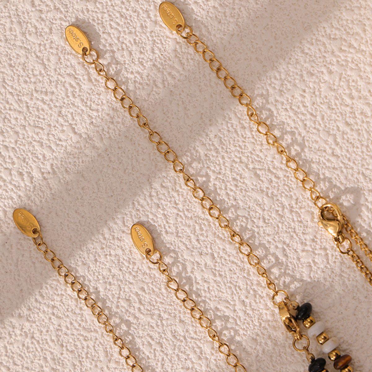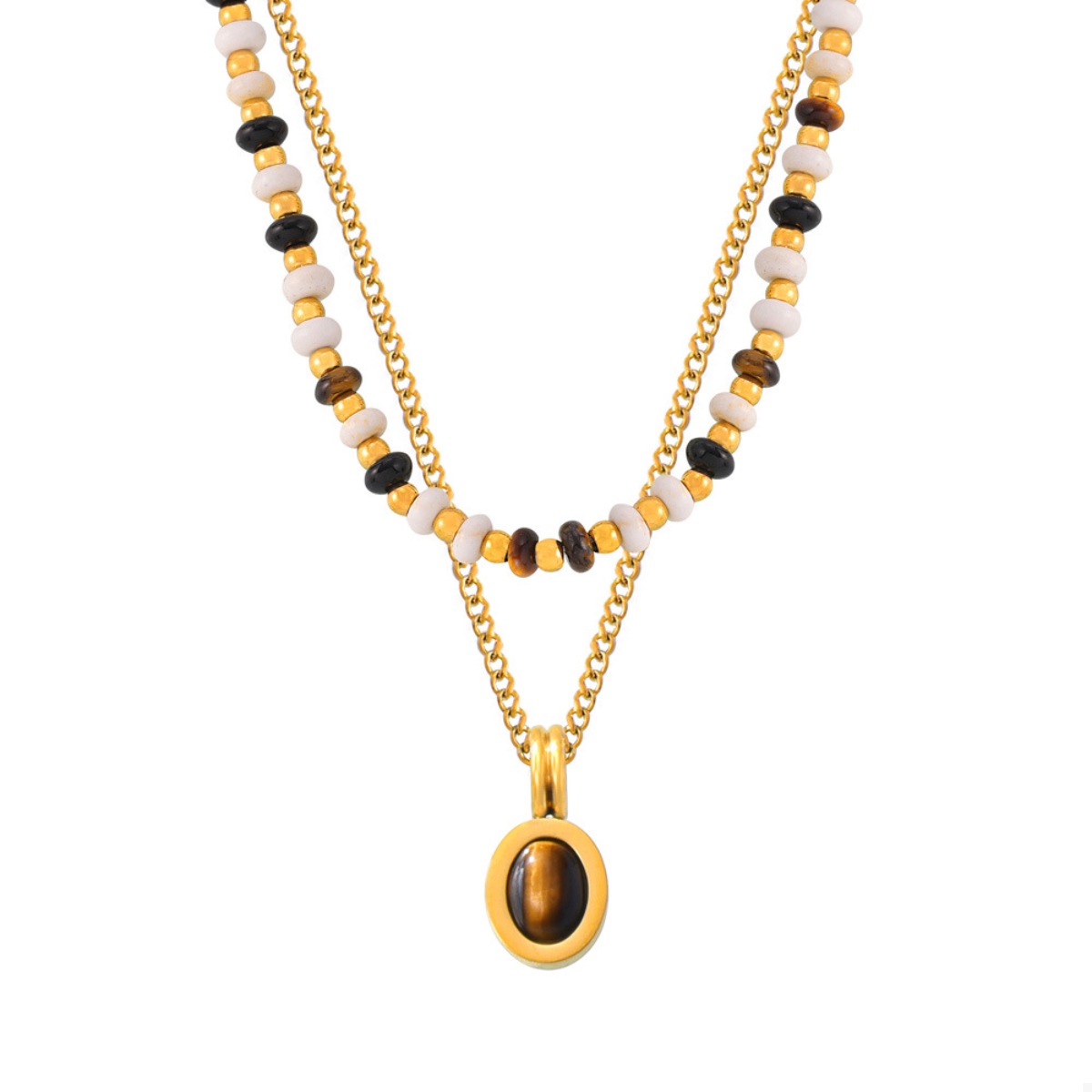 - Material:18K Gold-Plated,Natural stone,Titanium Steel,Tiger's eye stone