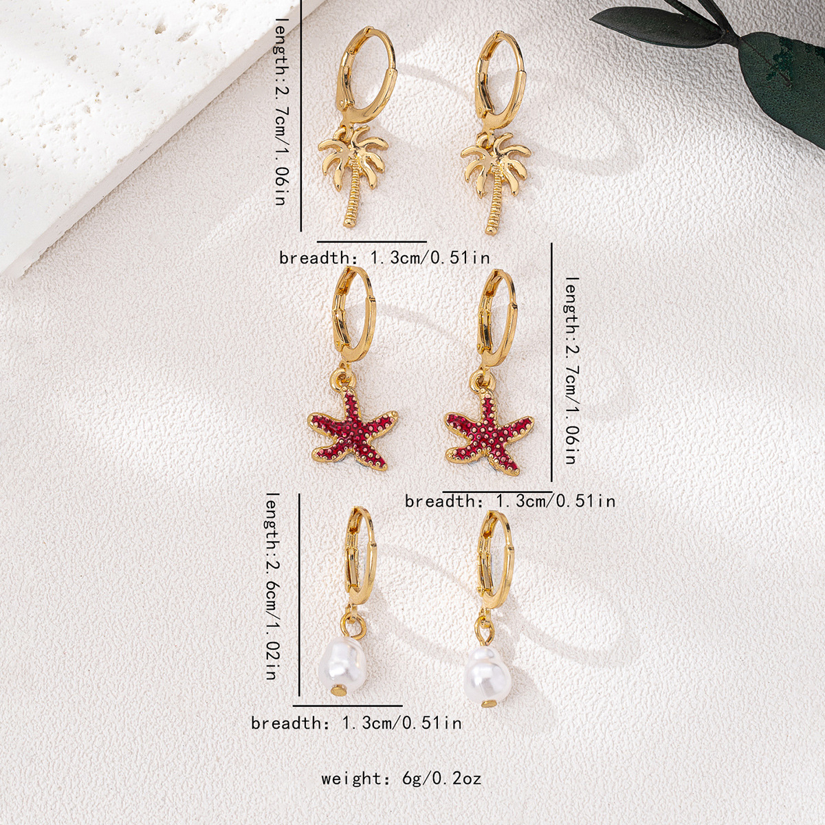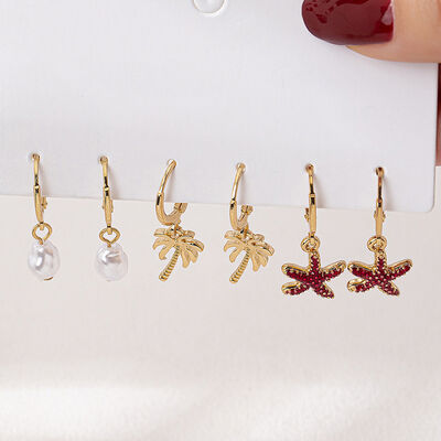 3-Pair 18K Gold-Plated Alloy Drop Earrings