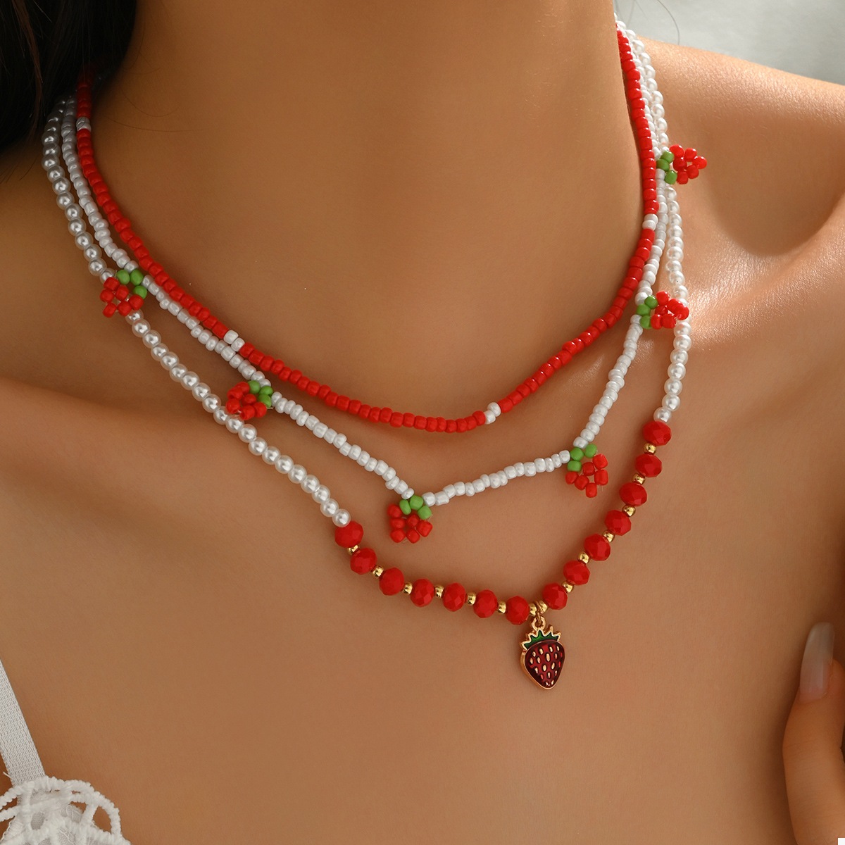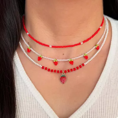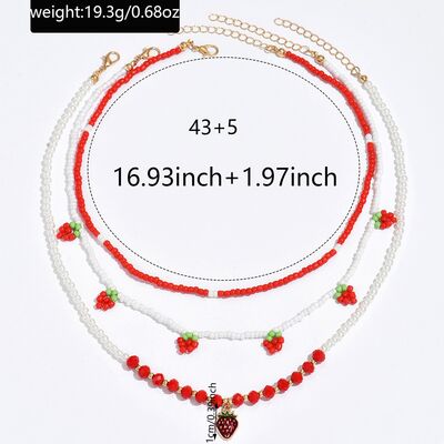 3 Piece Beaded Strawberry Necklace
