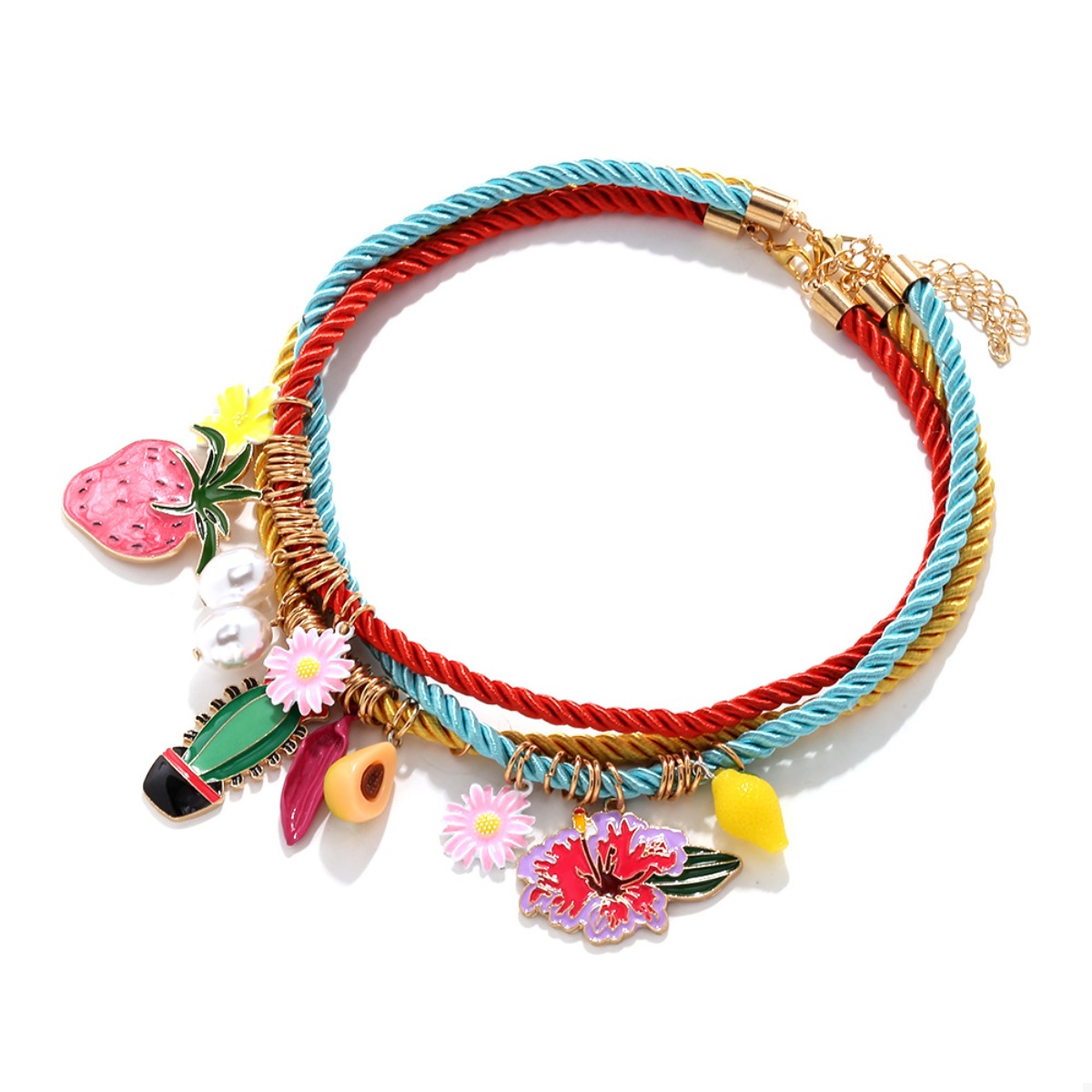 3 Piece Colorful Rope Charm Necklace
