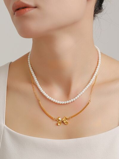 3 Piece Pearl Necklace, Bow Necklace and Stud Earrings Jewelry Set
