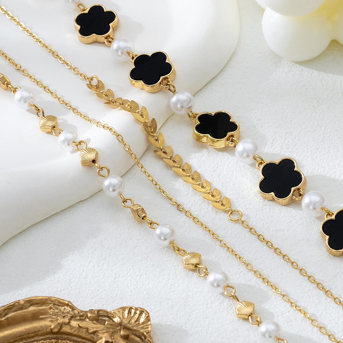 - Material:Synthetic Pearl,18K Gold-Plated,Alloy,Resin