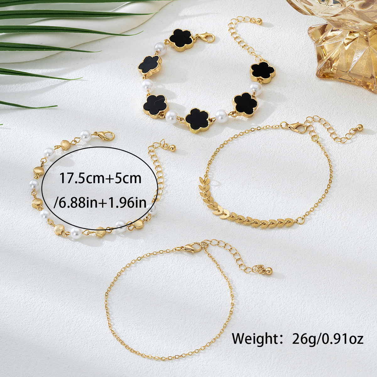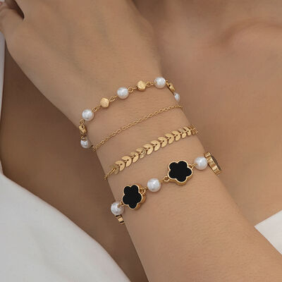 4-Piece 18K Gold-Plated Alloy Resin Bracelet