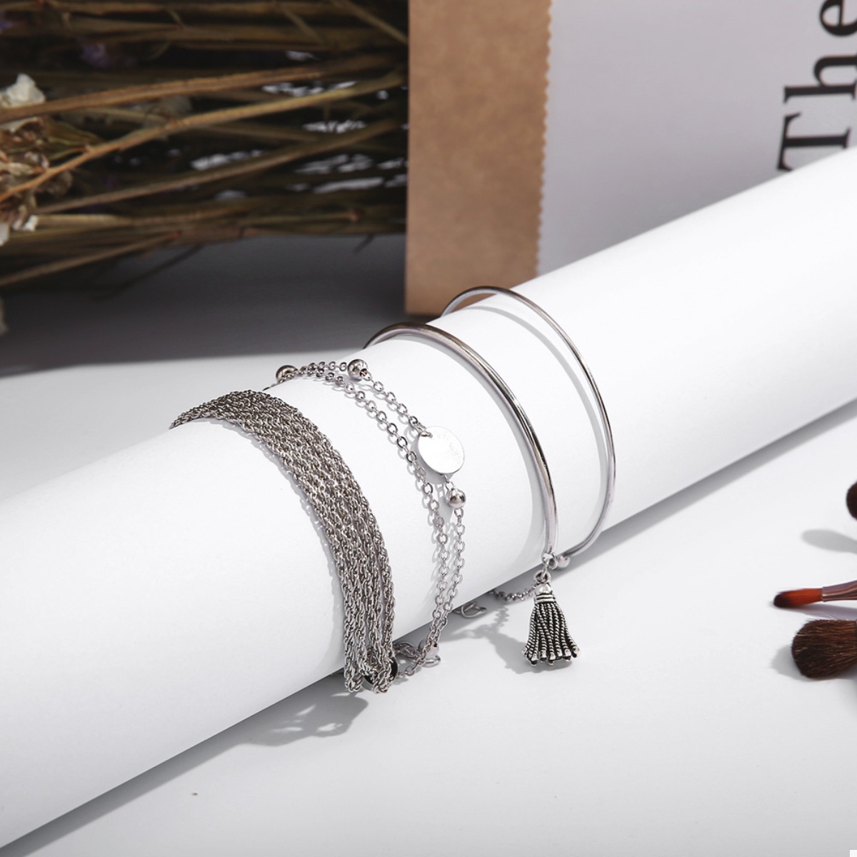 4 Piece Silver-Plated Minimalist Bracelet