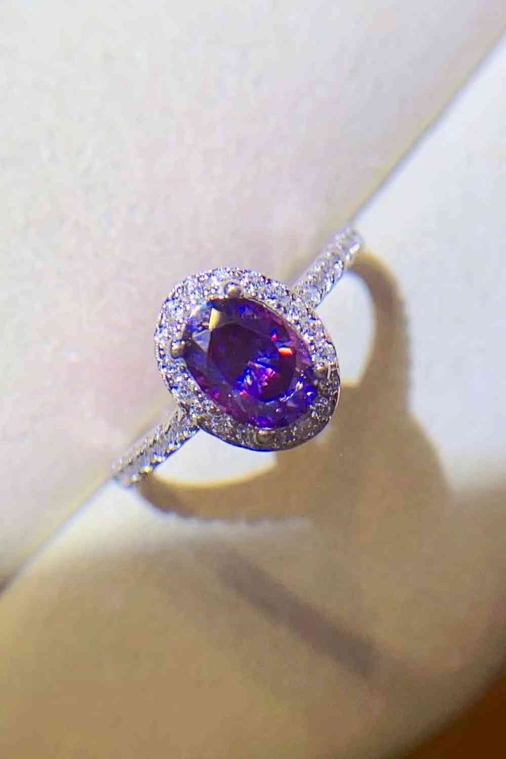 925 Sterling Silver 1 Carat Purple Moissanite Ring
