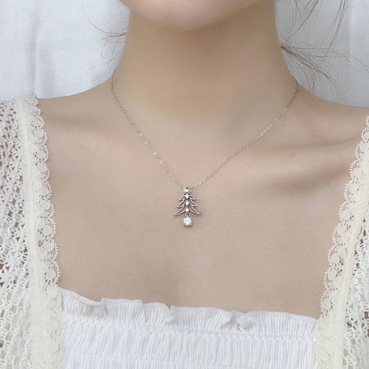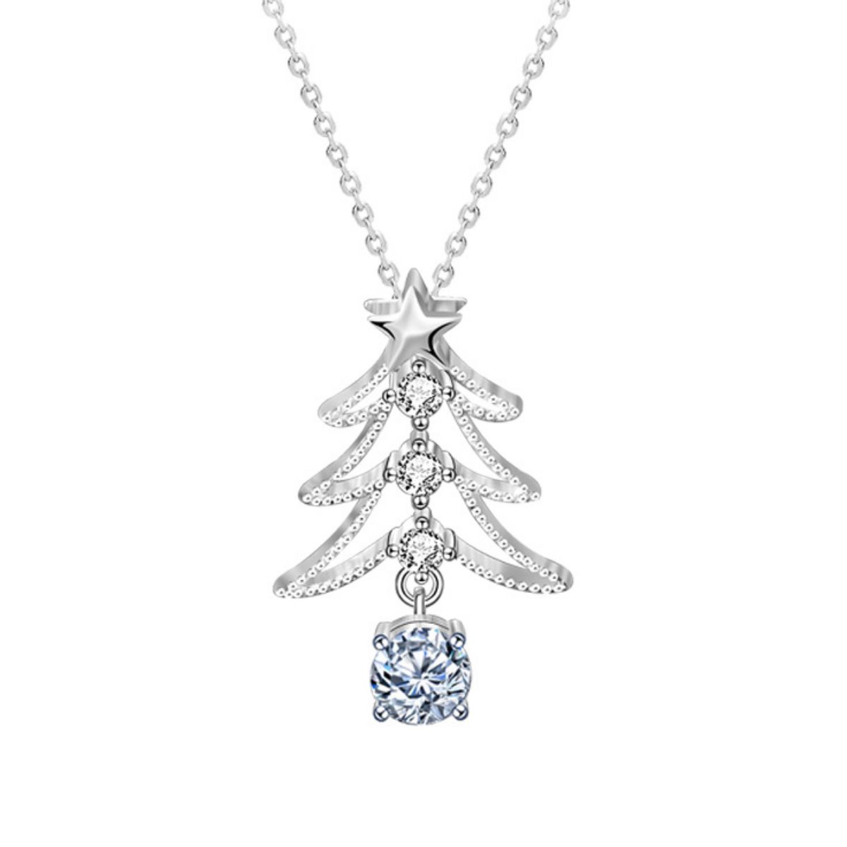 925 Sterling Silver Christmas Tree Pendant Necklace