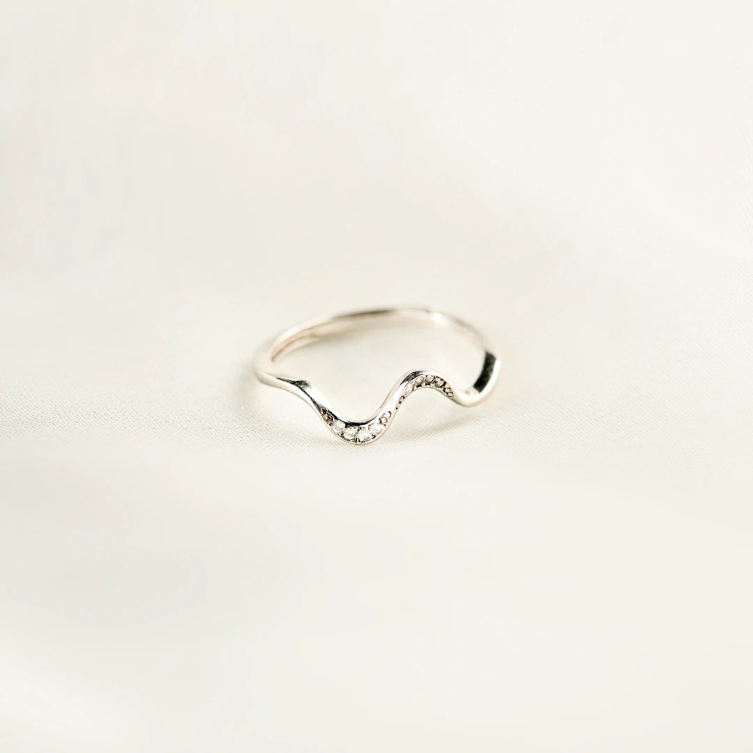 925 Sterling Silver Inlaid Zircon Wave Shape Ring
