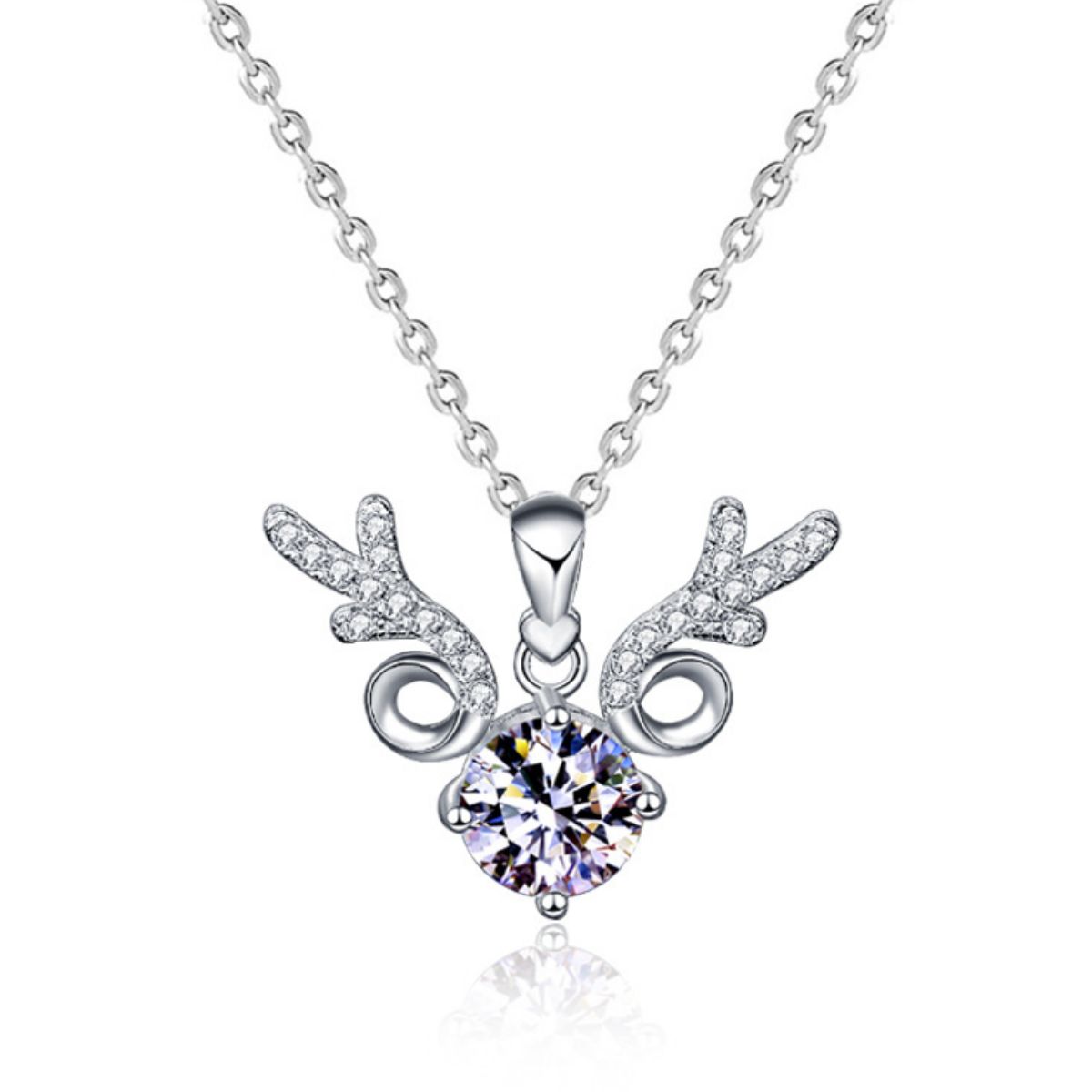 925 Sterling Silver Moissanite Deer Antler Pendant Necklace