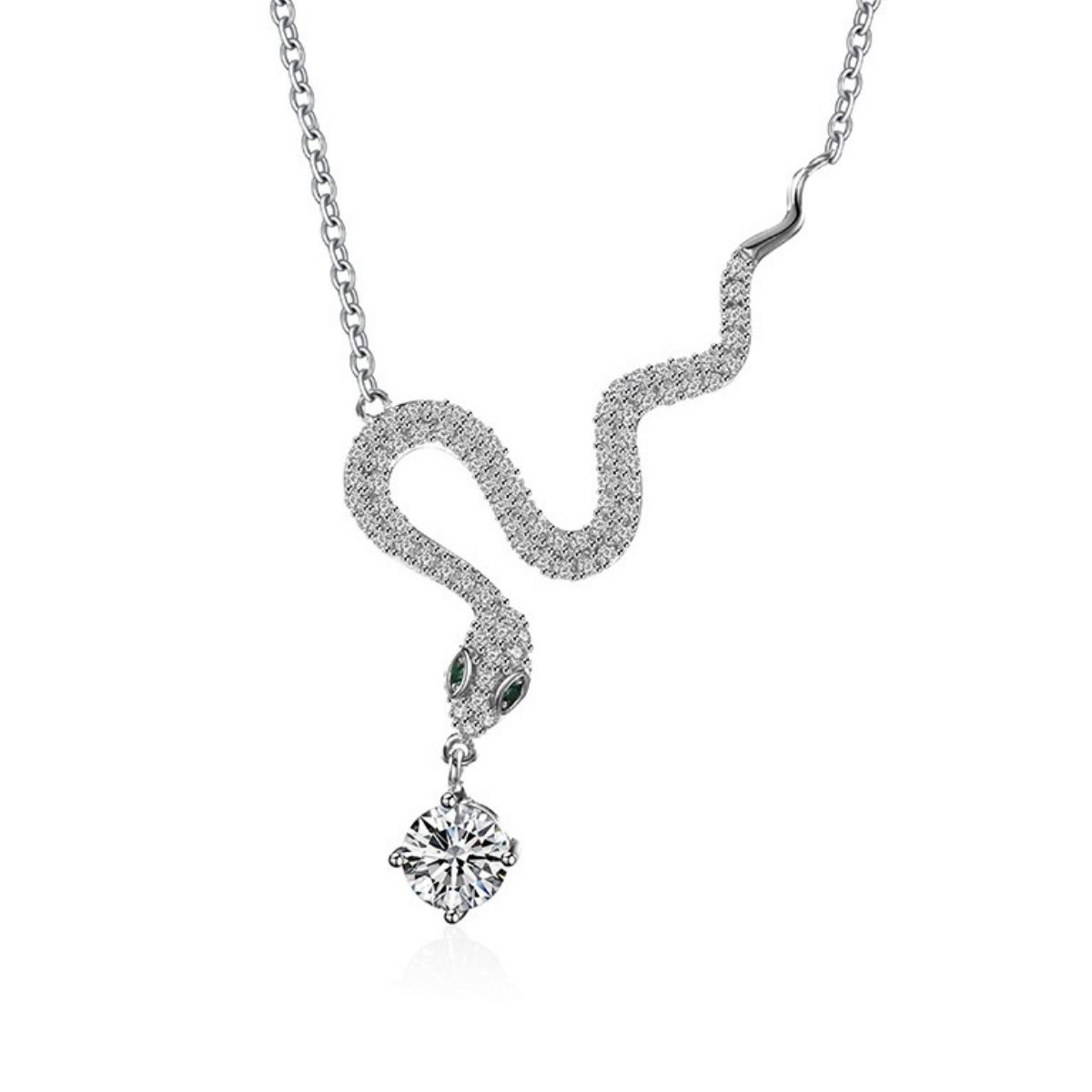 925 Sterling Silver Moissanite Snake Pendant Necklace