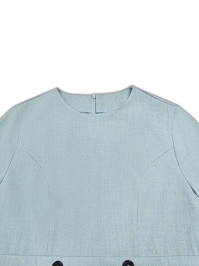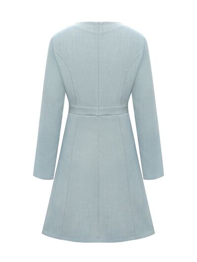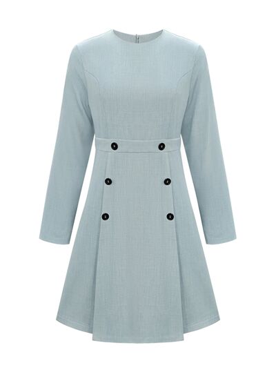 A-Line Decor Button Long Sleeve Dress