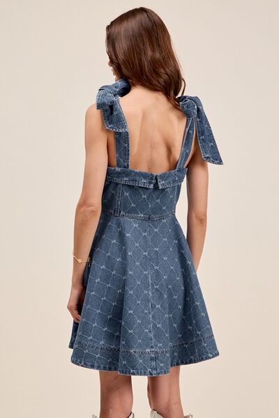 A Line Fit and Flare Diamond Bow Ribbon Denim Dres
