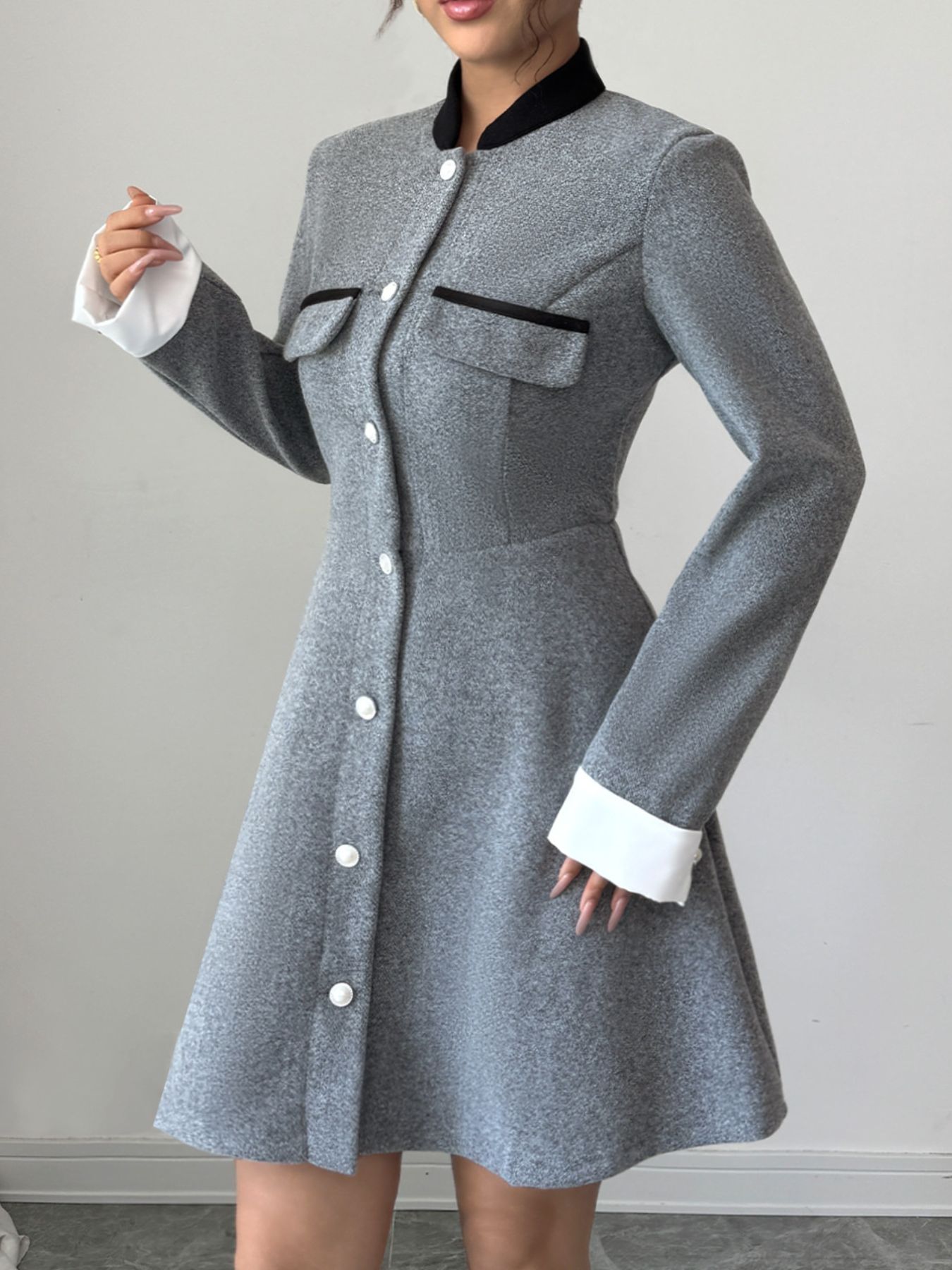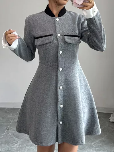 A-Line Long Sleeve Button-Down Dress