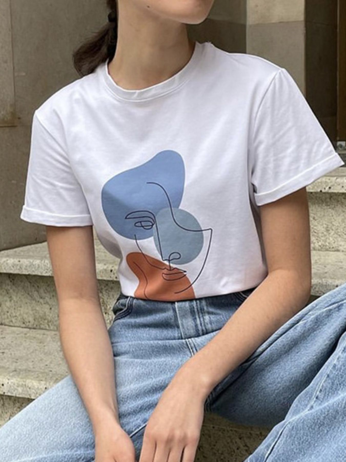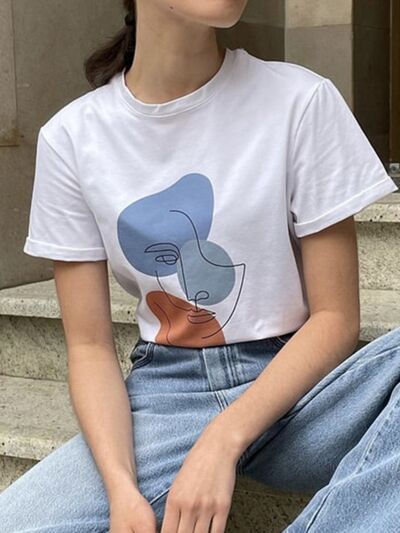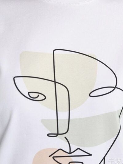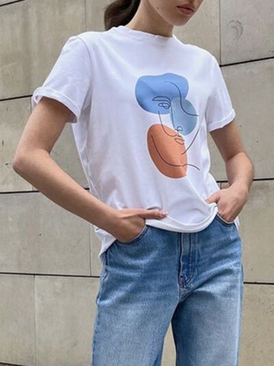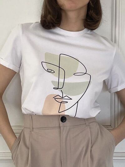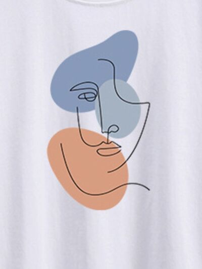 Abstract Face Graphic Casual Round Neck T-Shirt
