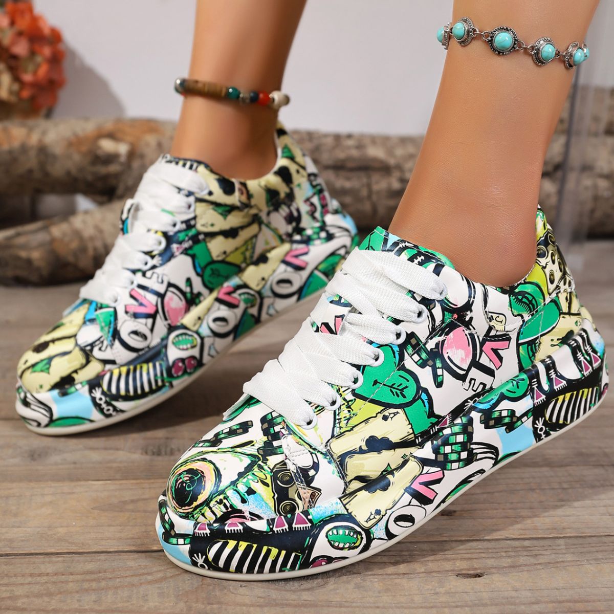 Abstract Print Lace Up Sneakers