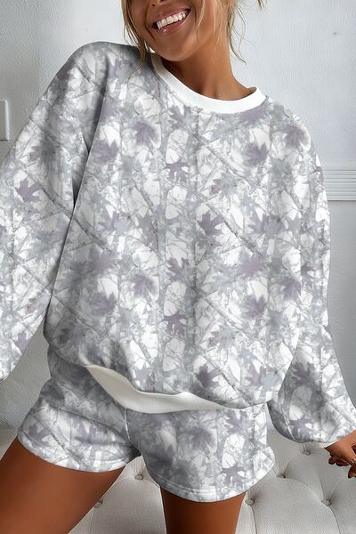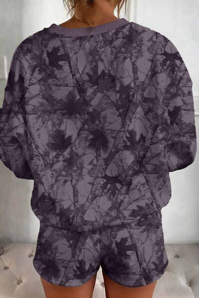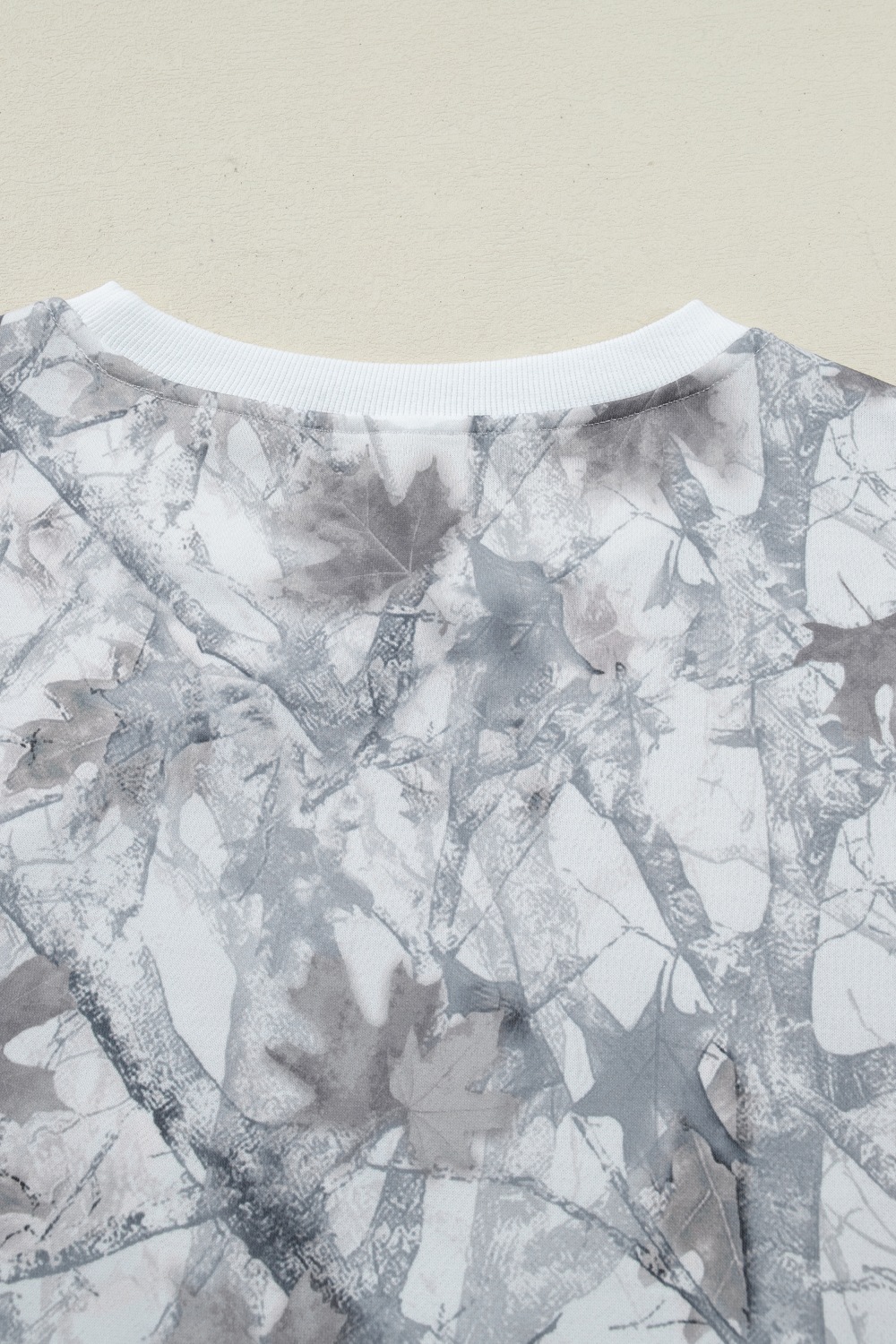 Abstract Woodland Camo Print Baggy Pullover Drawstring Shorts Set