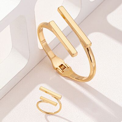 Adjustable 18K Gold-Plated Modern Bar Bracelet and Ring Jewelry Set