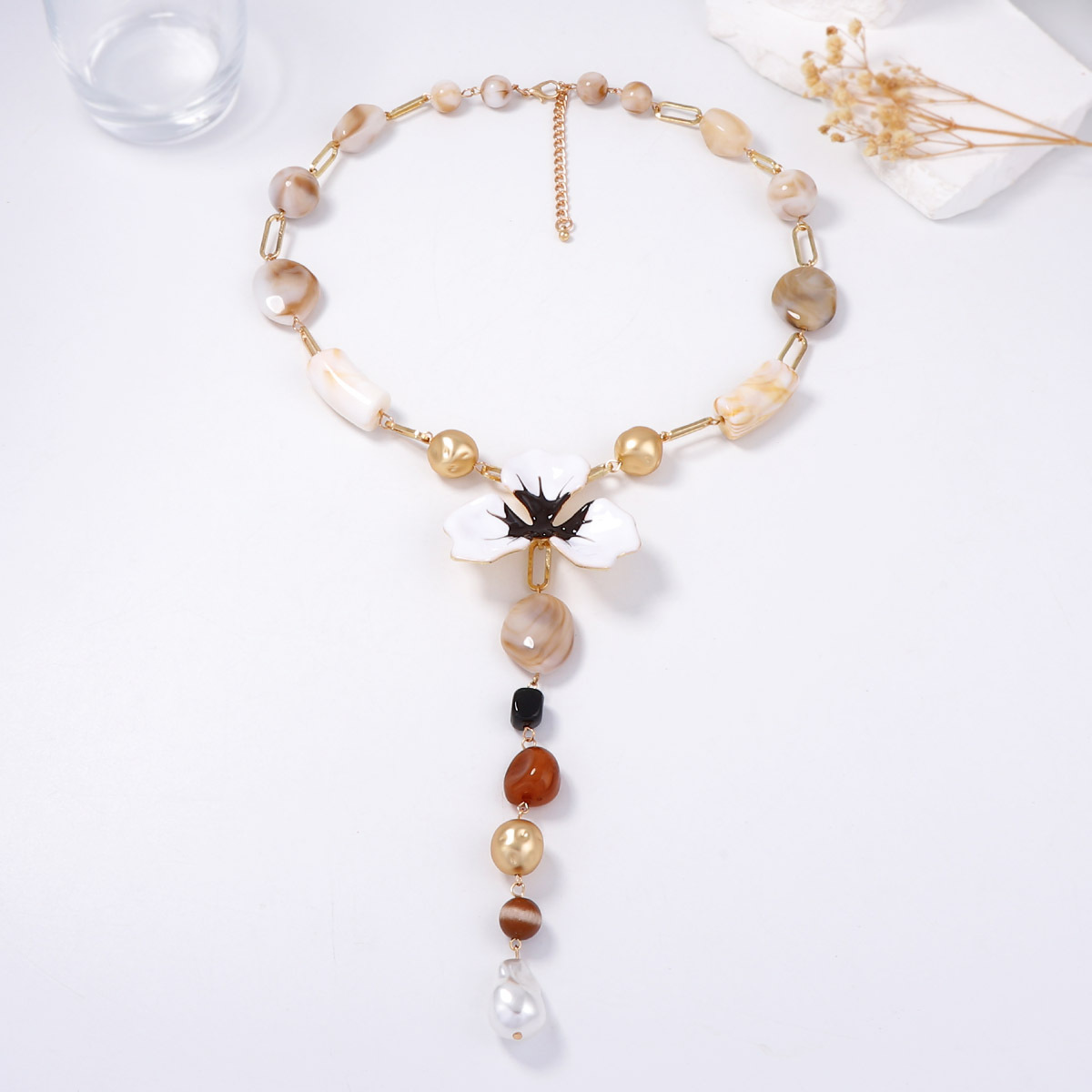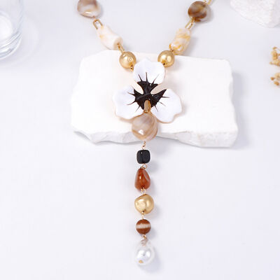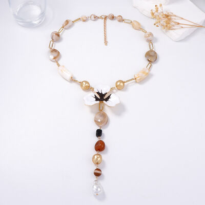 Alloy Dripping Oil Flower Resin Y-Shaped Necklace