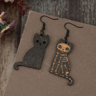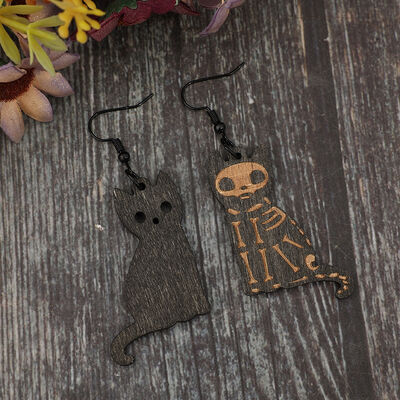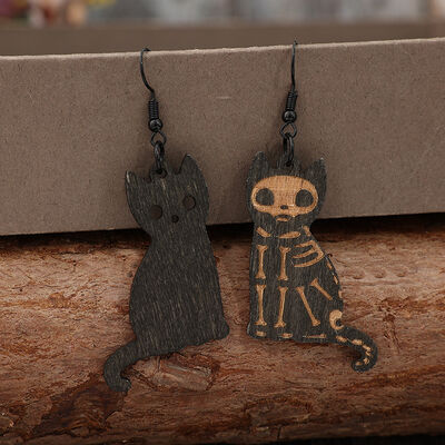 Alloy Hook Wooden Cat Earrings