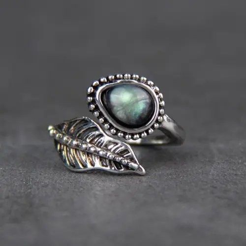Alloy Moonstone Leaf Bypass Ring