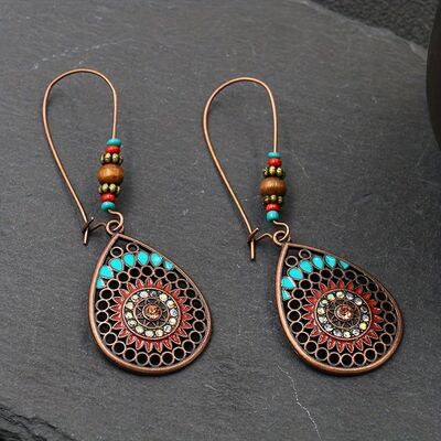 Alloy Oil Drip Beaded Teardrop Earrings