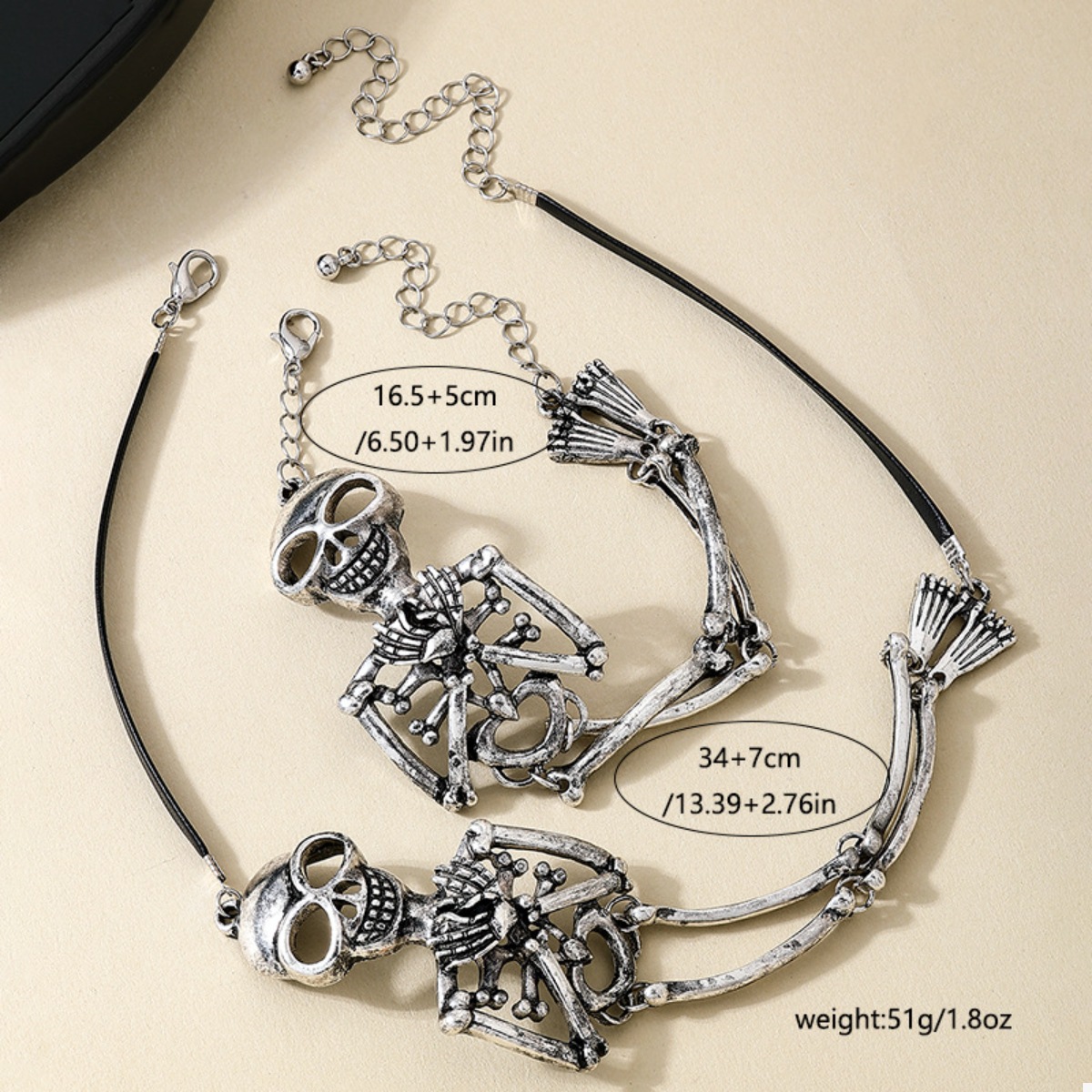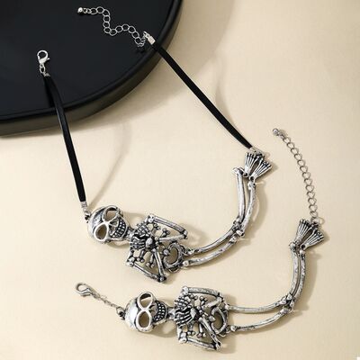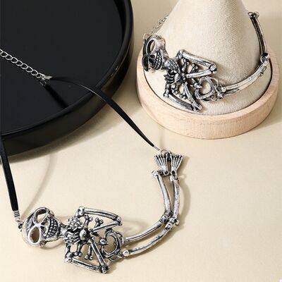 Alloy Skull Necklace and Bracelet Jewelry Set