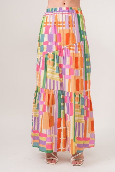Asymmetric Geo Printed Tiered Maxi Skirt