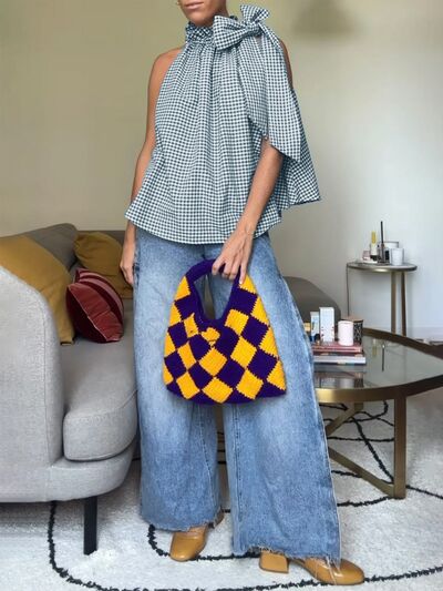 Asymmetric Gingham Bow Tie Sleeveless Top