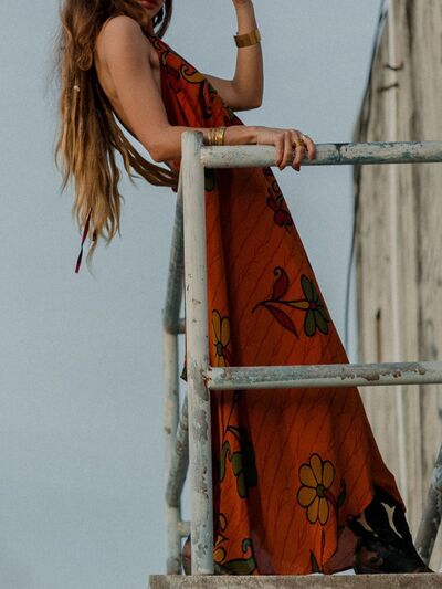 Asymmetrical Hem Printed Halter Neck Dress