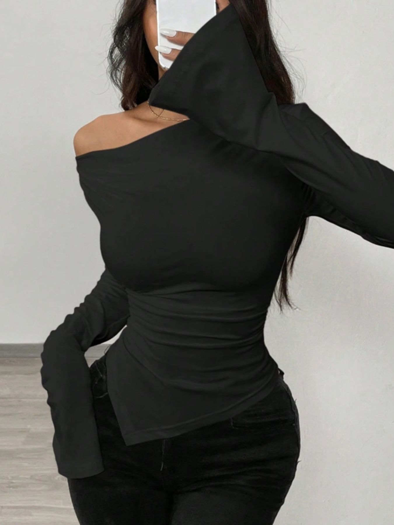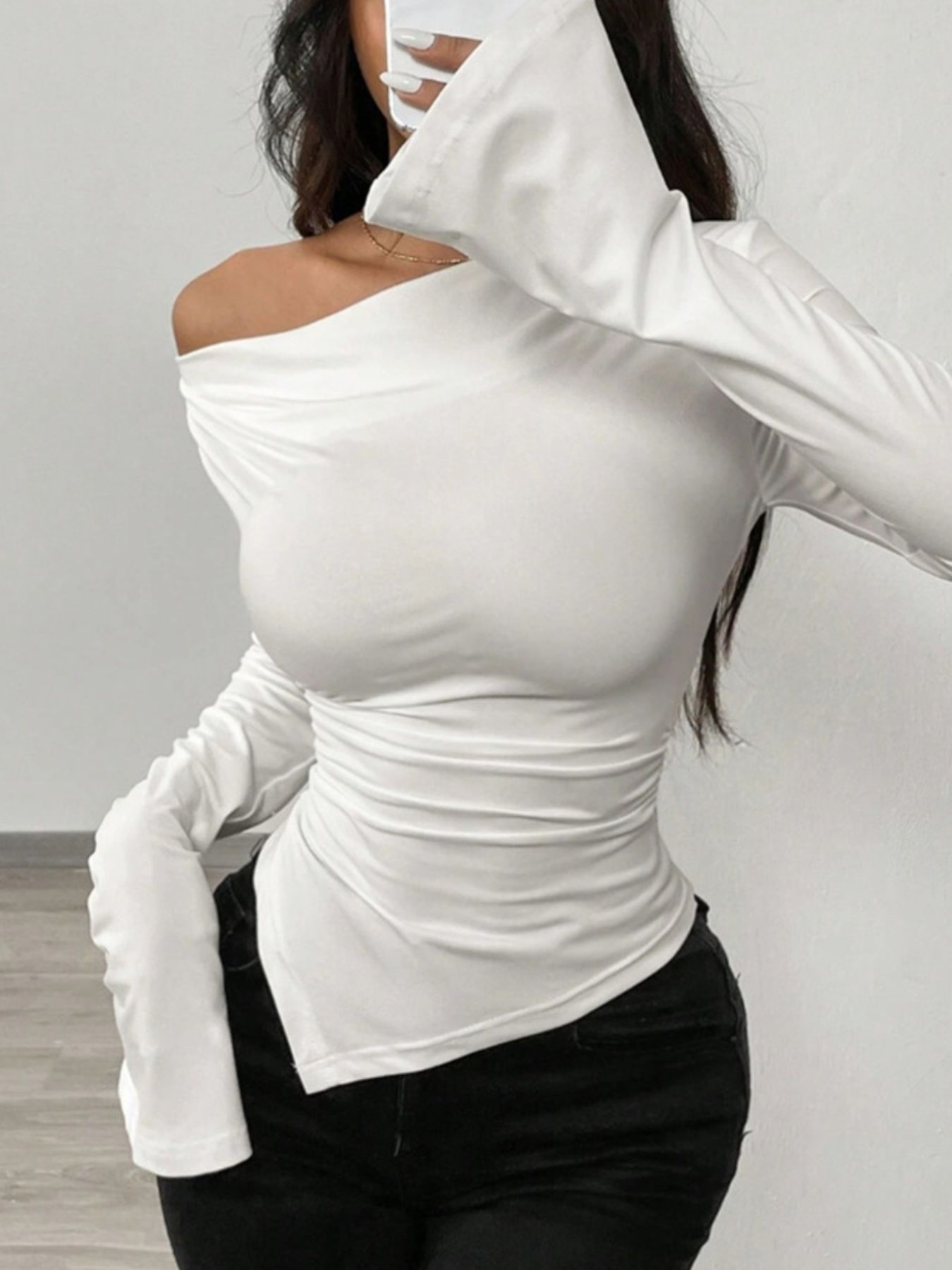 Asymmetrical Long Sleeve Fitted T-Shirt