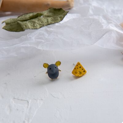 Asymmetrical Mouse & Cheese Stud Earrings