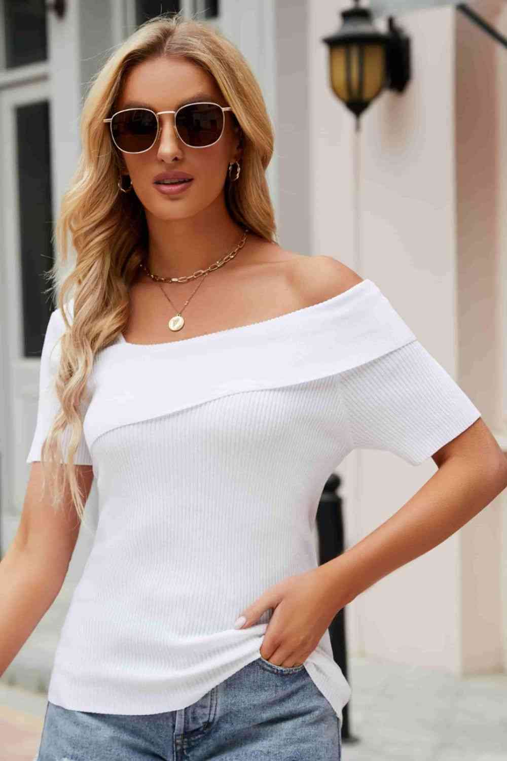Asymmetrical Neck Rib-Knit Top